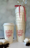 Your hot beverages will stay hot in these Insulated cups with a holiday greeting which make the perfect hostess gift or addition to your home for the holidays!  Set of 6 includes lids and are wrapped in cello with a red and white ribbon for a great presentation that is ready to go!