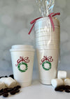 Your hot beverages will stay hot in these Insulated cups with a holiday greeting which make the perfect hostess gift or addition to your home for the holidays!  Set of 6 includes lids and are wrapped in cello with a red and white ribbon for a great presentation that is ready to go!